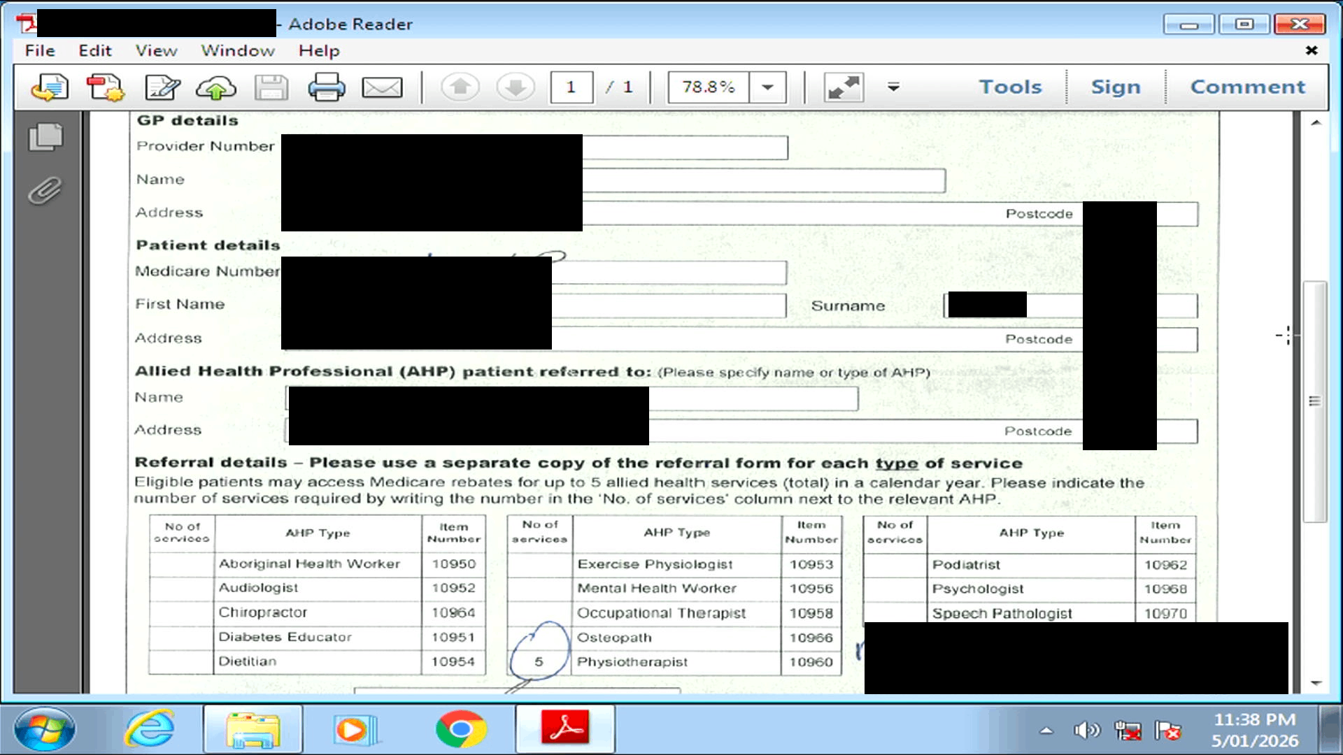 - Personal identification: full names, Medicare numbers, addresses, phone numbers
