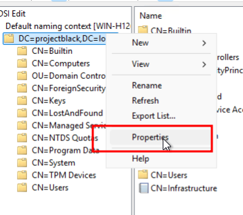Launch ADSI Edit and connect to the Default naming context.