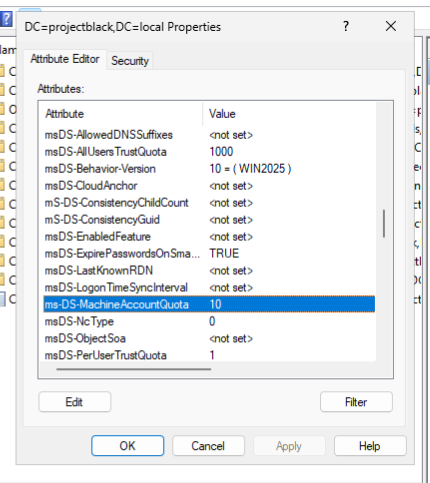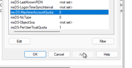 Set ms-DS-MachineAccountQuota to 0